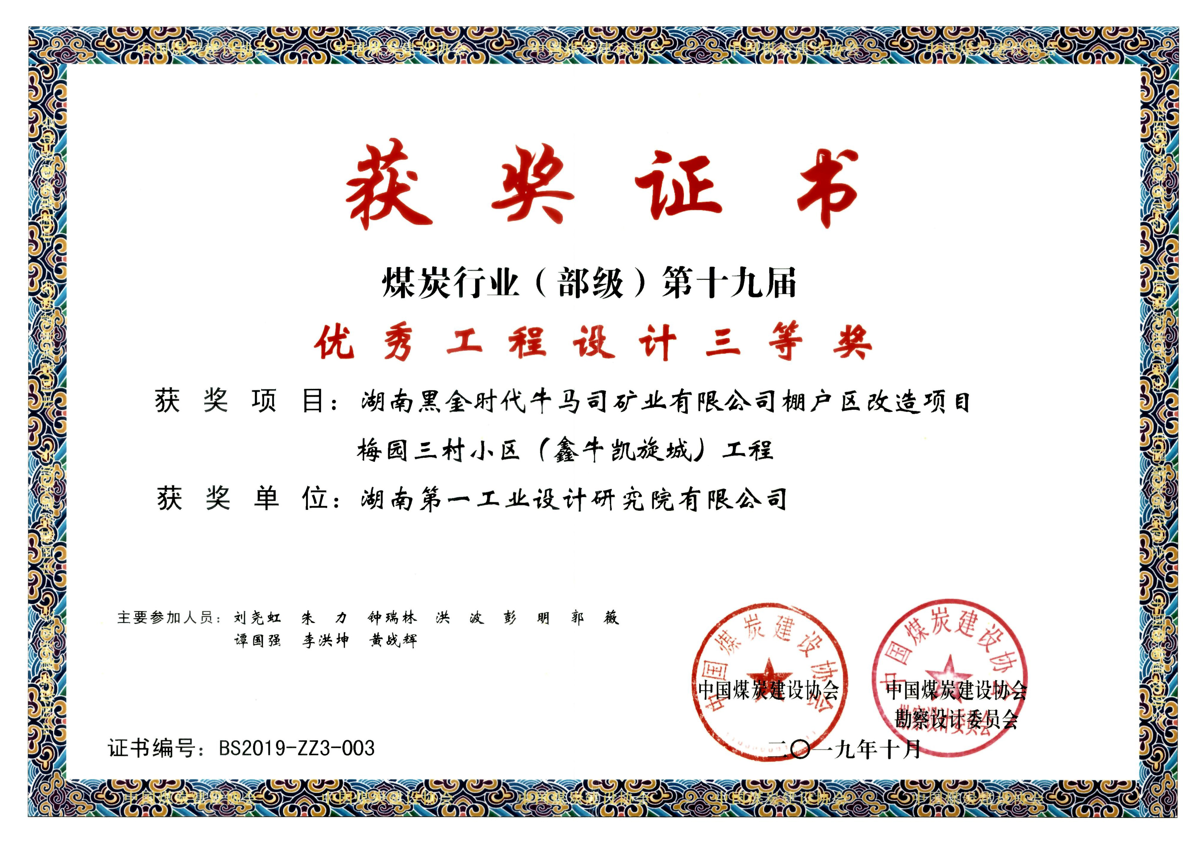 湖南省優秀設計表揚金獎(1984)