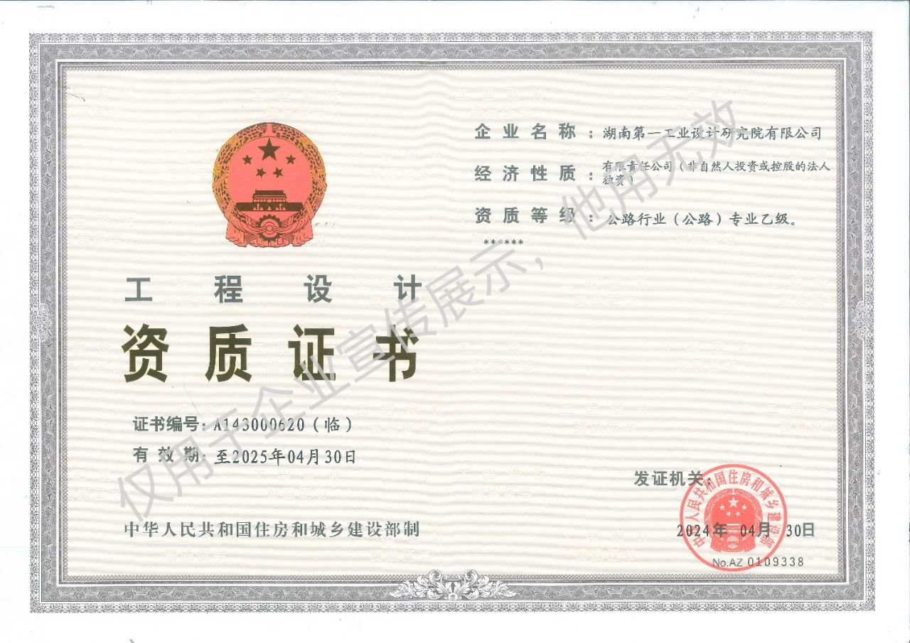 工程設計乙級資質證書